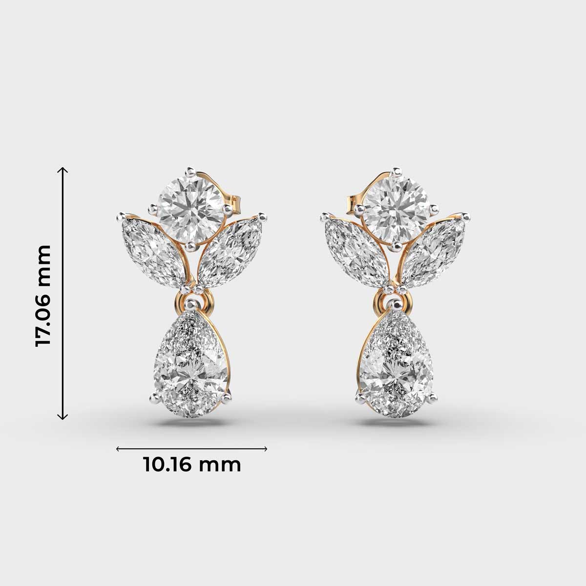 Romantic and radiant, Serene Drop Diamond Earrings showcase a sparkling diamond framed with drop diamonds. The design enhances the brilliance of the central diamond, creating a look that is both charming and timeless. Perfect for expressing love or adding a touch of sparkle to everyday wear, these versatile studs pair beautifully with both traditional and contemporary outfits.
