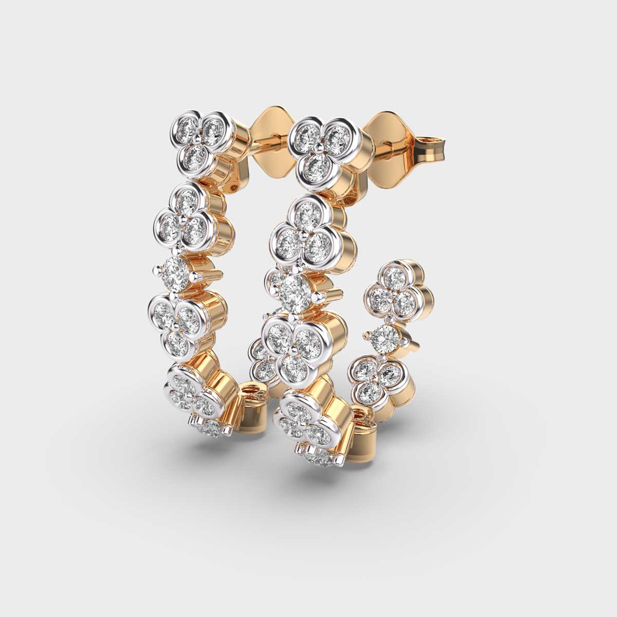 Shimmering Cascade Diamond Hoop Earrings are a splendid classic, reimagined with modern touches of diamond brilliance. From sleek, minimalist circles for everyday wear to bold, diamond-encrusted hoops for evening glamour, they offer endless versatility. A pair of diamond hoops adds instant chicness to any look, contemporary yet enduring.