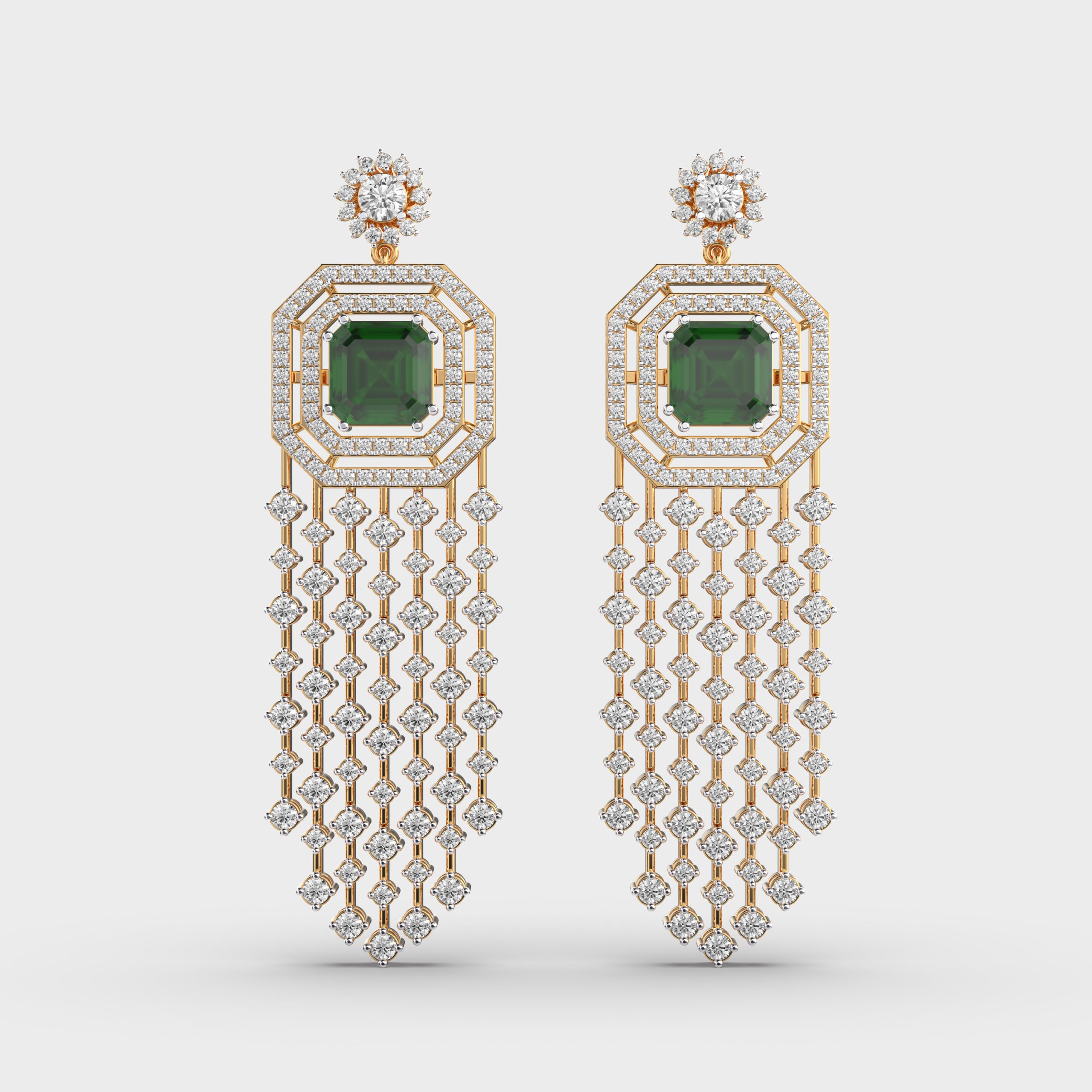 Shimmering Glorious Green Cascade Diamond Earrings