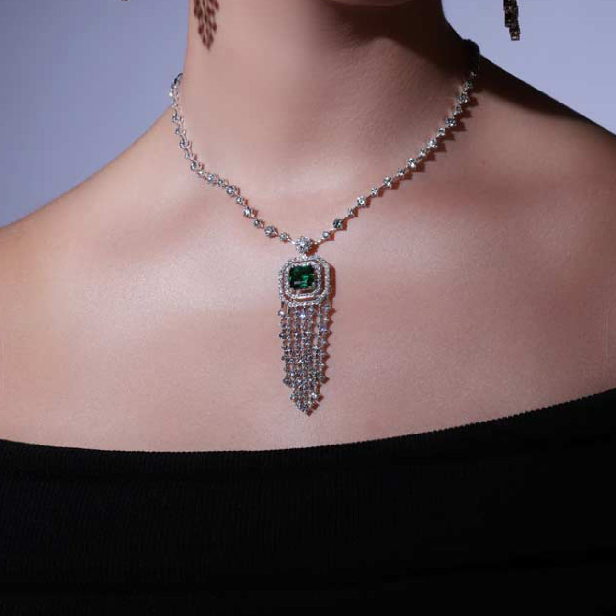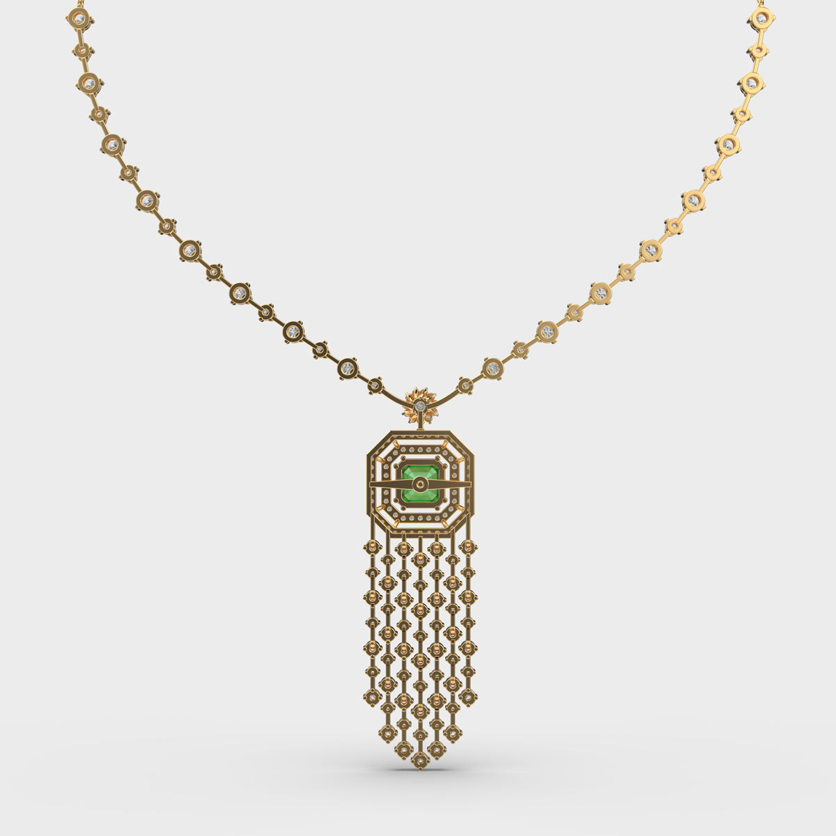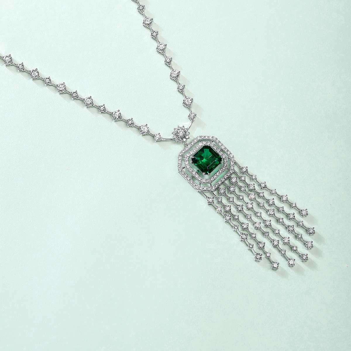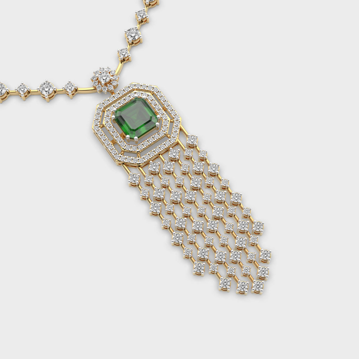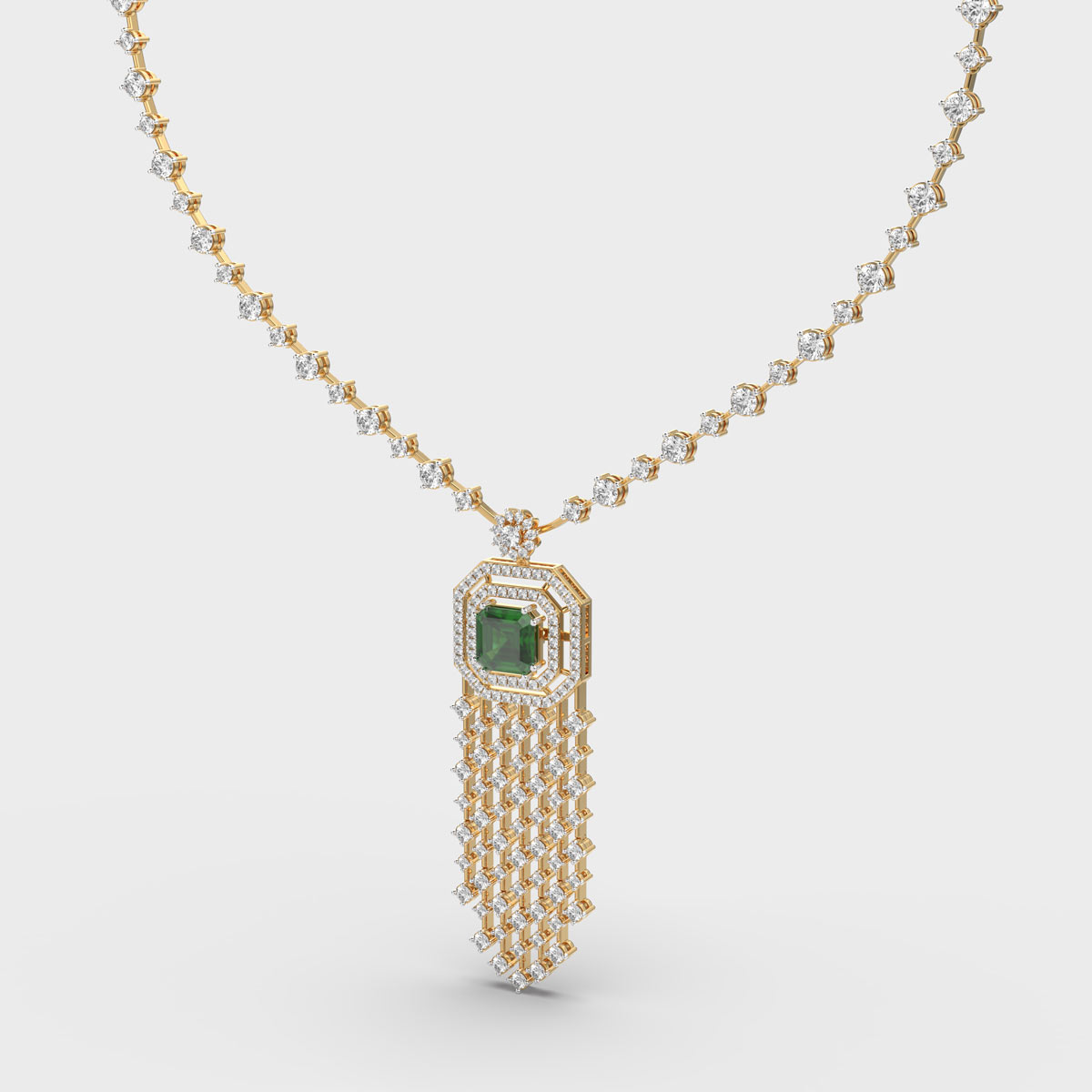 Shimmering Glorious Green Cascade Diamond Necklace