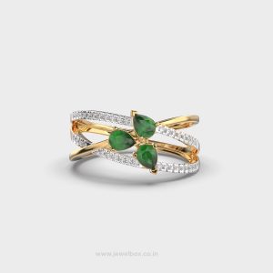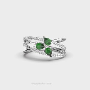 Enchanting Crossover Green Stone Diamond Ring