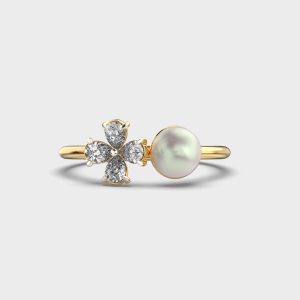 Pearl and Flower Duo Diamond Ring
