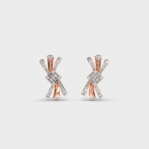 Ribbon Bunch Dual Tone Diamond Earrings