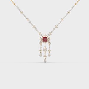 Red Stone Diamond Drop Necklace
