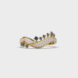Wave Diamond Ring With Blue Stones