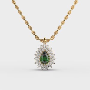 Belladonna Green Stone Diamond Pendant With Chain