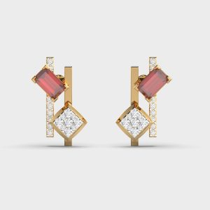 Dark Pink Stone Diamond Earstuds