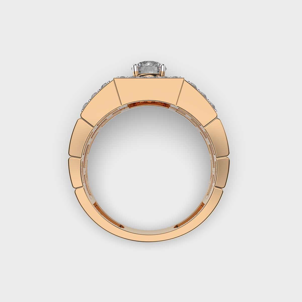 Bold, refined, and powerful. The Signature Men’s Diamond Halo Ring For Men is a statement of strength blended with sophistication. Designed in lustrous gold, the band features a striking rectangular panel encrusted with multiple rows of brilliant lab-grown diamonds, creating an aura of unmatched elegance. The structured design adds a masculine edge, making it a perfect piece for modern men who appreciate both luxury and character.