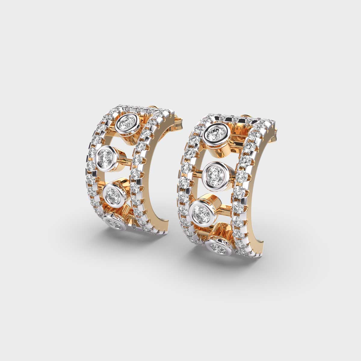 Sleek Radiance Intricate Diamond Hoop Earrings sit close to the ear, offering a sleek and modern alternative to traditional hoops. Adorned with rows of sparkling diamonds, they bring a refined edge to everyday dressing. Comfortable yet stylish, huggies are the perfect choice for those who appreciate minimalism with a touch of glamour.