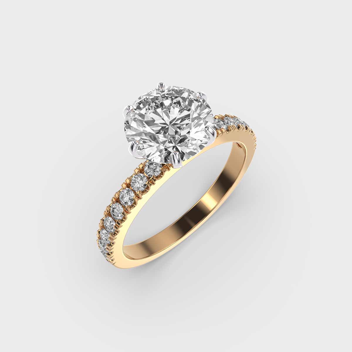 A solitaire round diamond encrusted ring showcases the timeless elegance of a single stunning round brilliant diamond as the centerpiece. Solitaire Round Diamond Encrusted Ring known for its simplicity and sophistication, this design draws all attention to the diamond’s exceptional sparkle and clarity, making it the focal point without any distractions from other stones or elaborate settings.