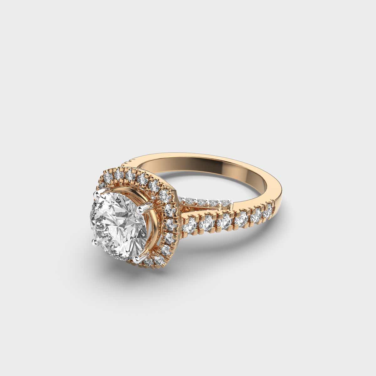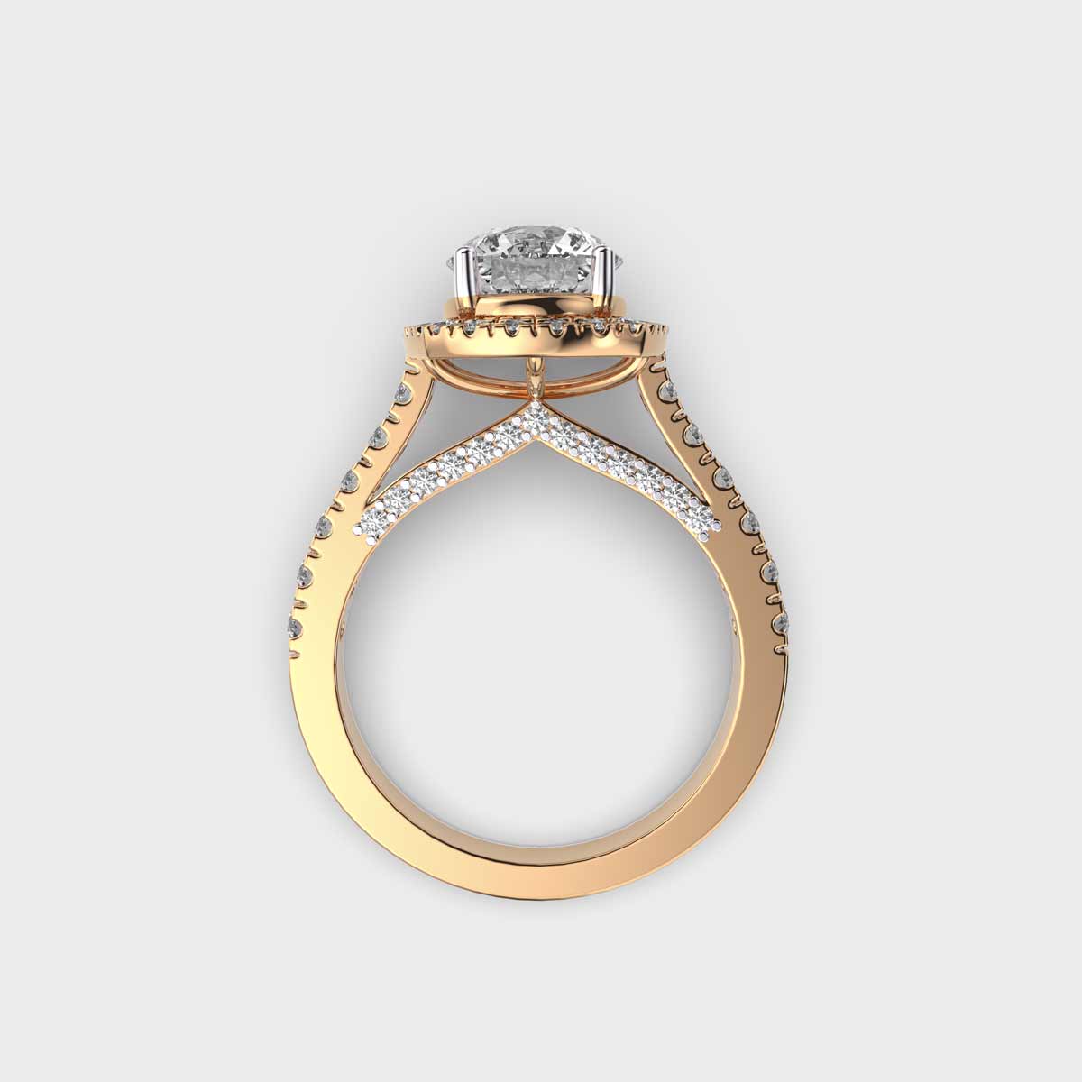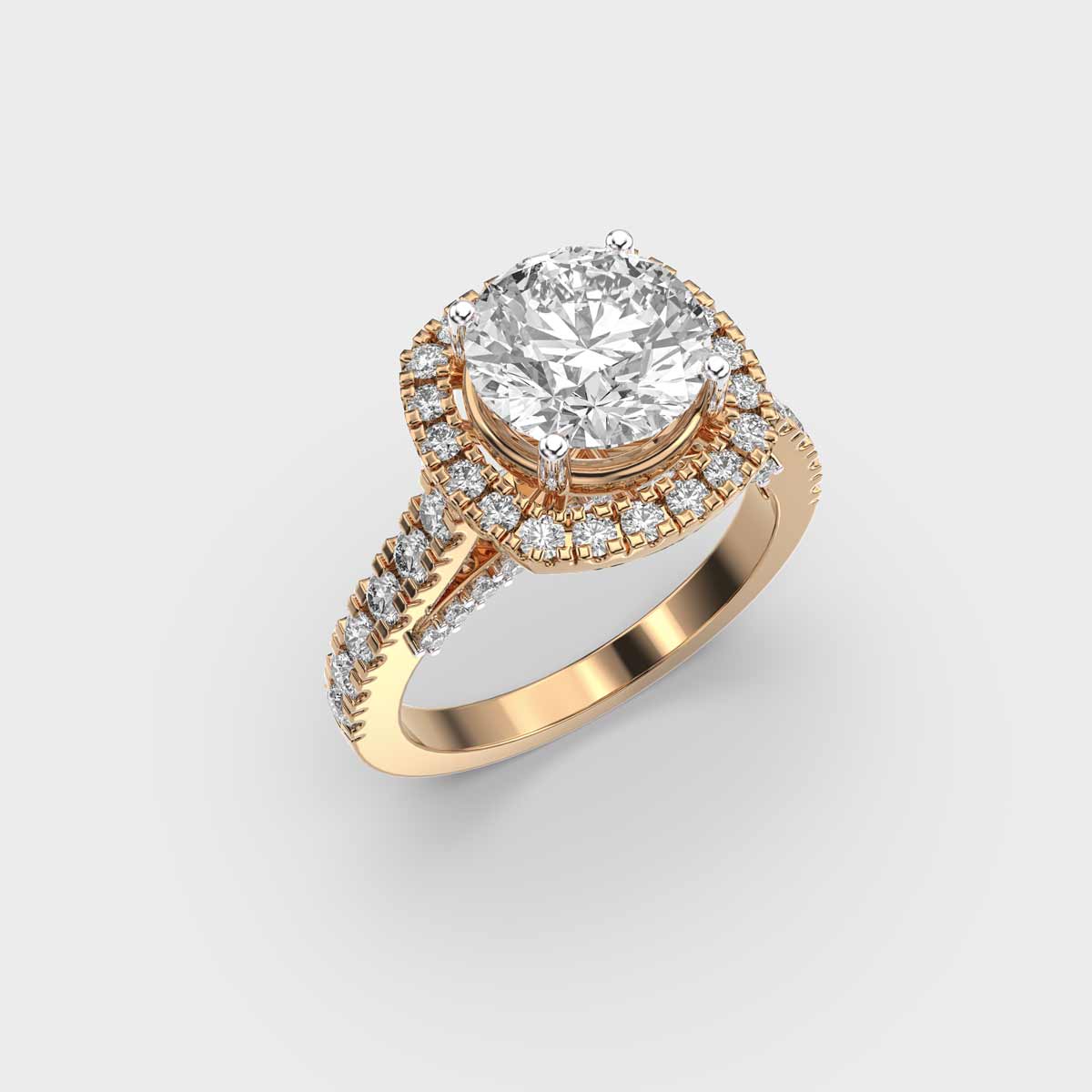 Beautifully combines the timeless elegance of a solitaire diamond with the added brilliance of a diamond halo set along the edges Solitaire With Edge Diamond Halo Ring features single prominent solitaire diamond captures attention with its dazzling sparkle and classic appeal. Surrounding this main stone is a halo of smaller diamonds that trace the edges of the setting, enhancing the ring’s overall radiance and making the central diamond appear larger.