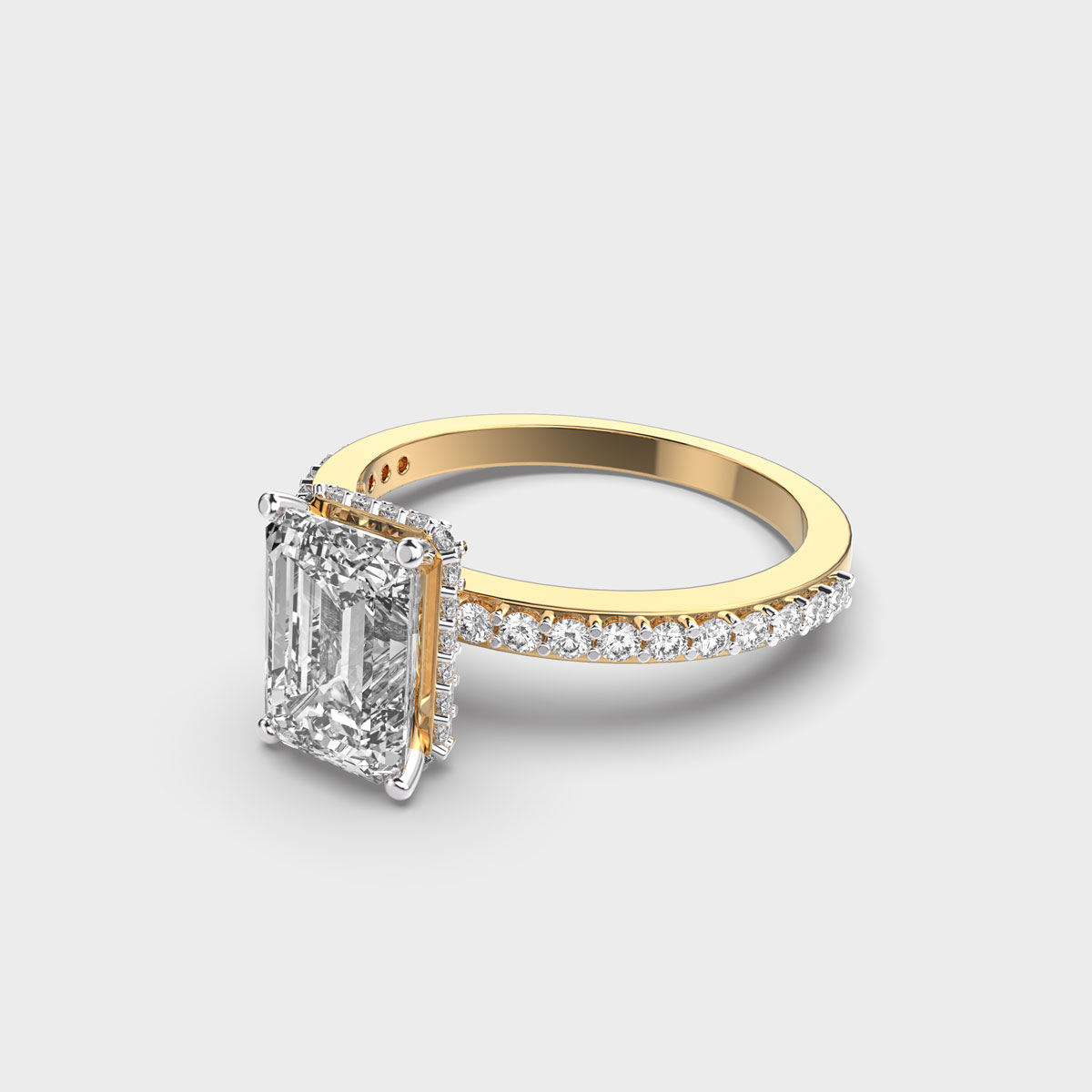 Whispering of timeless romance, the Sospiri Emerald Cut with Diamond Band pairs the graceful geometry of an emerald cut diamond with a shimmering band of smaller stones. The refined centerpiece reflects clarity and strength, while the sparkling band enhances its brilliance with delicate radiance