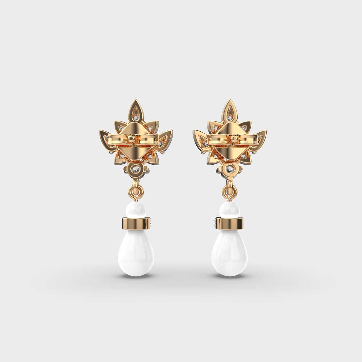 Starry Diamond Encrusted Pearl Drop Earrings blend sophistication with fluidity, falling gracefully below the earlobe for a delicate yet striking effect. They’re perfect for transitioning from day to night, pairing beautifully with both Western and traditional outfits. With every movement, the diamonds catch the light, making them a favourite for those who love a subtle statement.