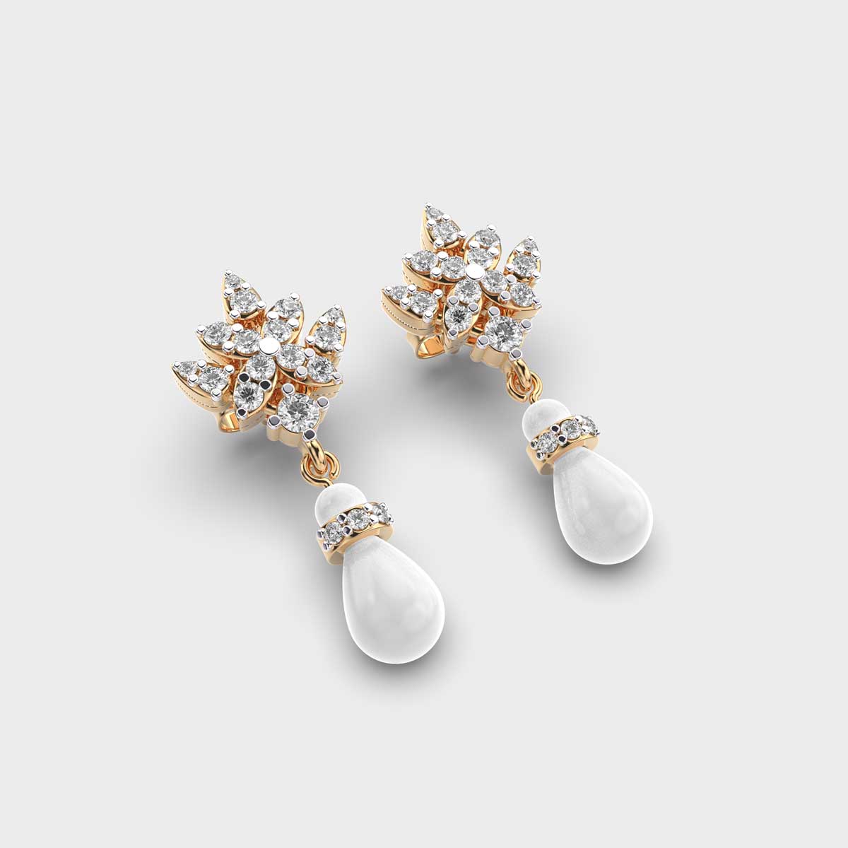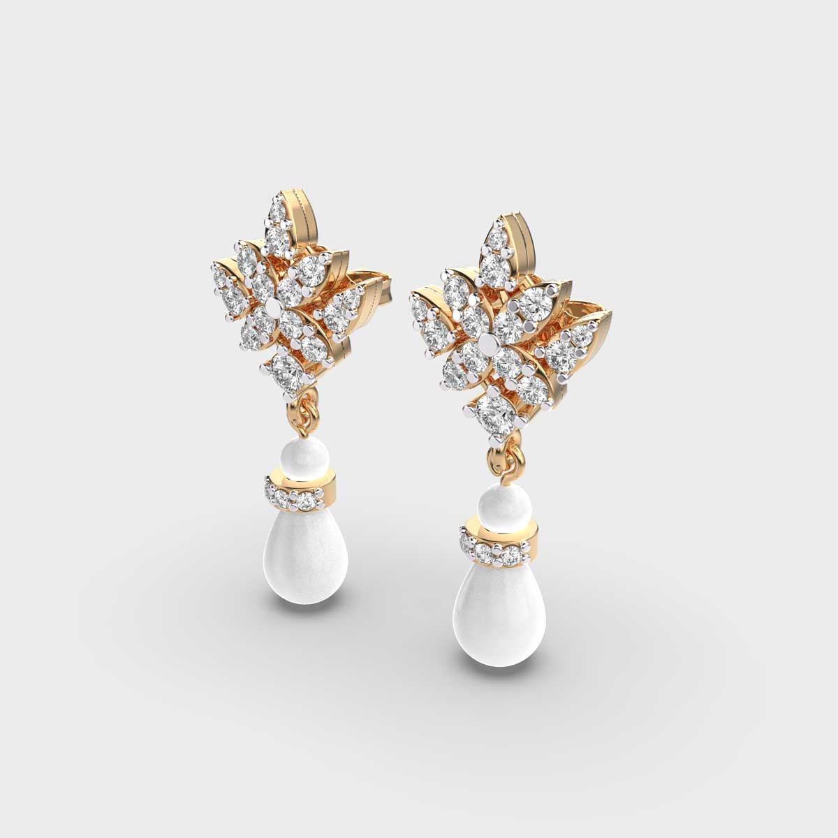 Starry Diamond Encrusted Pearl Drop Earrings blend sophistication with fluidity, falling gracefully below the earlobe for a delicate yet striking effect. They’re perfect for transitioning from day to night, pairing beautifully with both Western and traditional outfits. With every movement, the diamonds catch the light, making them a favourite for those who love a subtle statement.