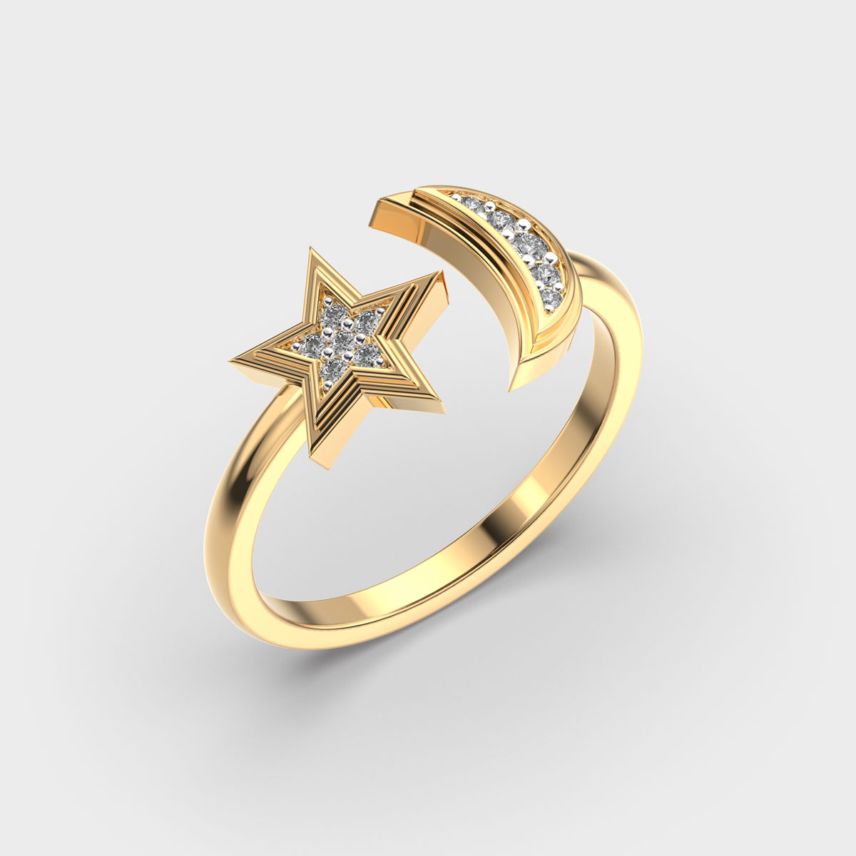 Stars And Moon Diamond Encrusted Ring