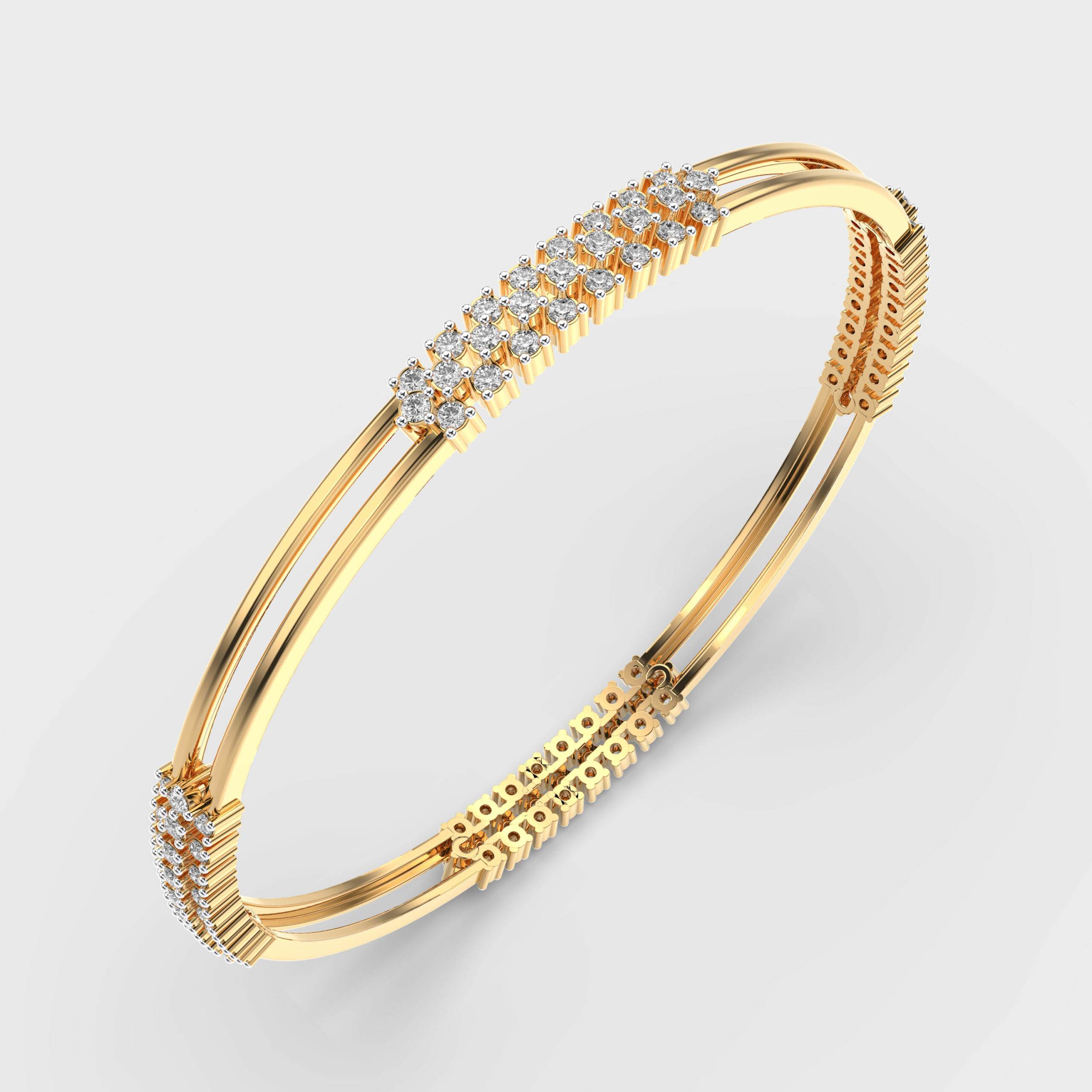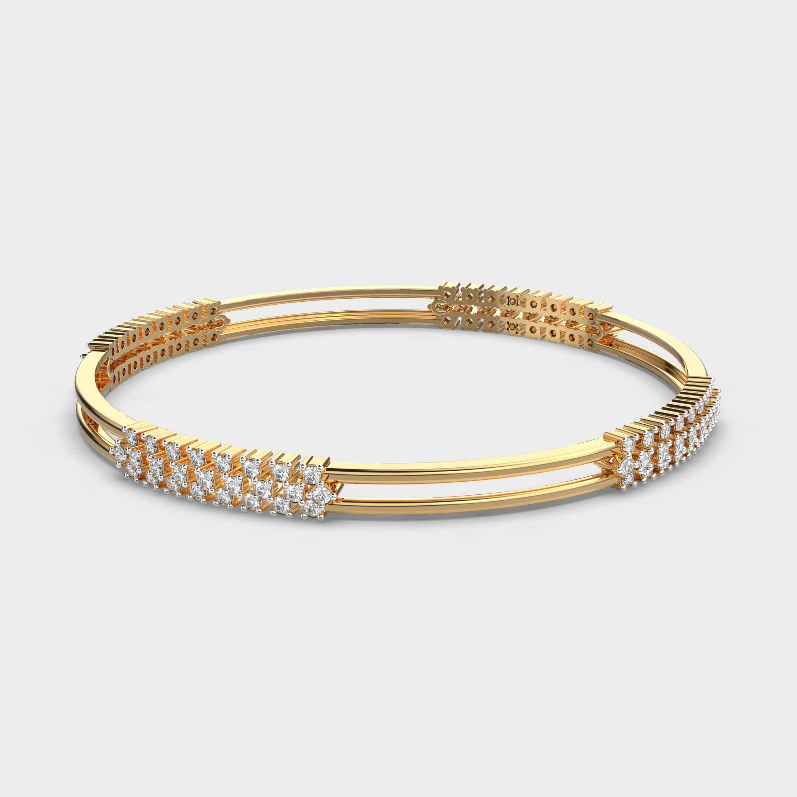 Stellar Chic Double Rimmed Diamond Bangle is a graceful accessory that adds sparkle and sophistication to any outfit. Featuring carefully set diamonds that catch the light from every angle, this piece is perfect for elevating everyday looks or complementing special occasions. Designed to balance elegance with versatility, a diamond bracelet is a timeless piece that reflects style, luxury, and enduring charm, making it a must-have addition to any jewellery collection.