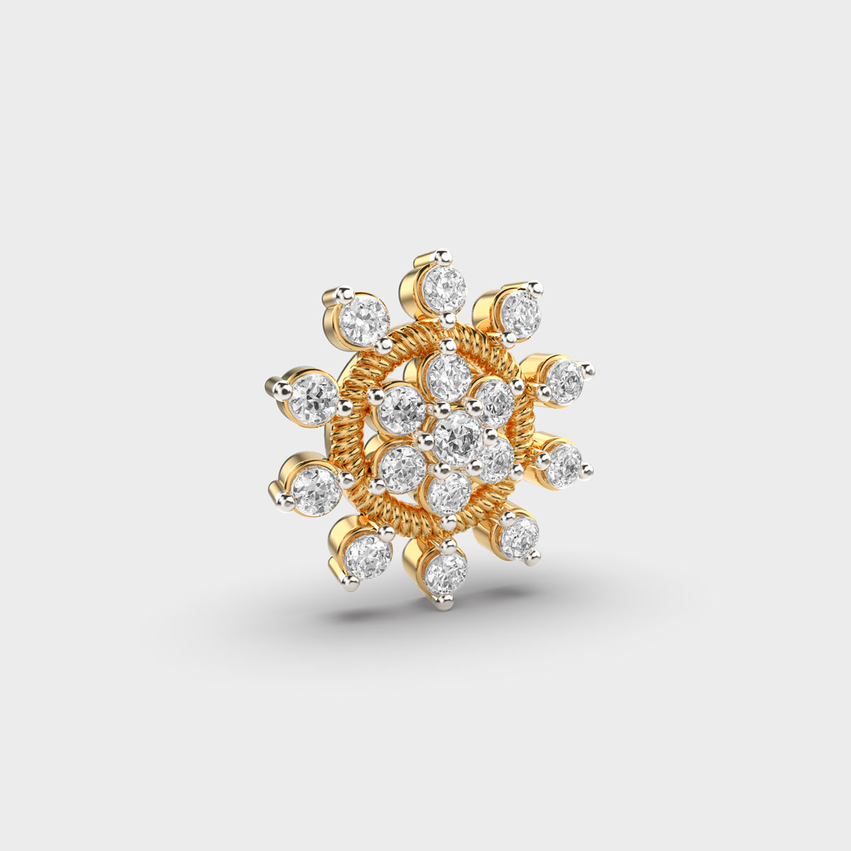 Sun Rises In The East Diamond Nosepin A delicate and elegant accessory that adds subtle sparkle and charm to any look. Crafted with precision, the sparkling diamond enhances its elegant design, making it perfect for both daily wear and special occasions. Lightweight and versatile, a diamond nosepin combines tradition with contemporary style, serving as a timeless piece that reflects personal elegance and refined taste.