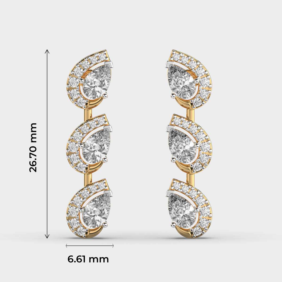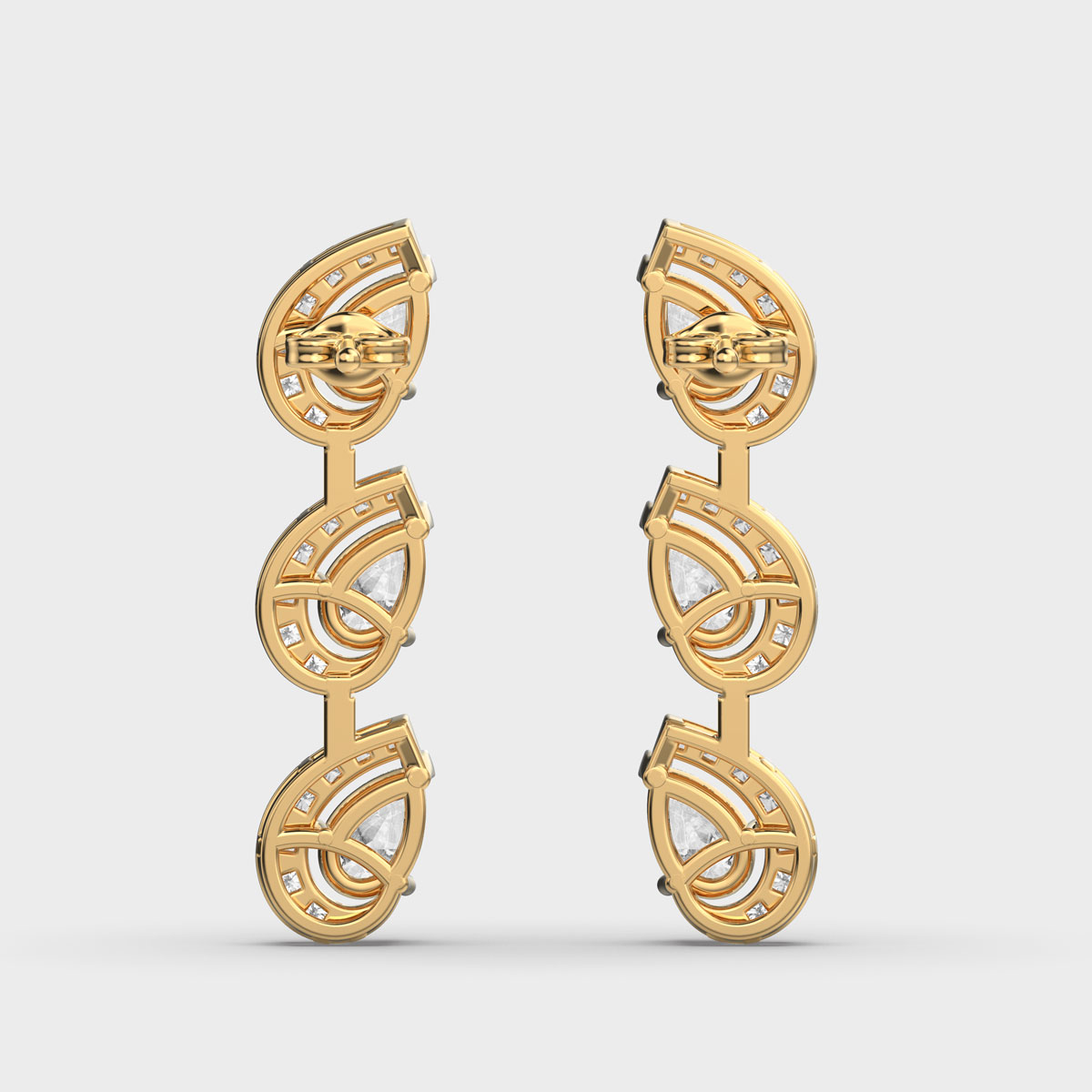 Three Leaf in a Row Diamond Earrings