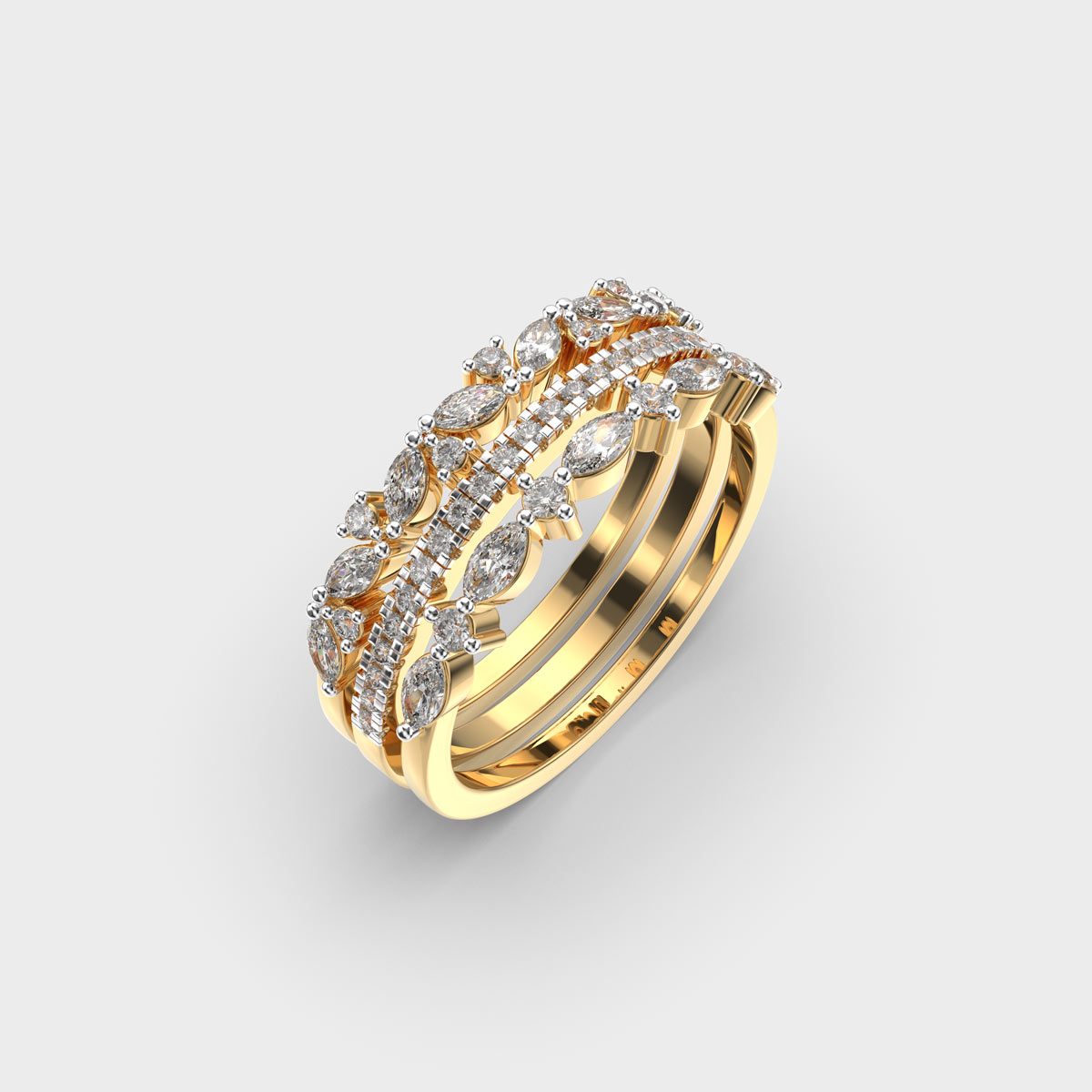 Tres Band Diamond Encrusted Statement Ring