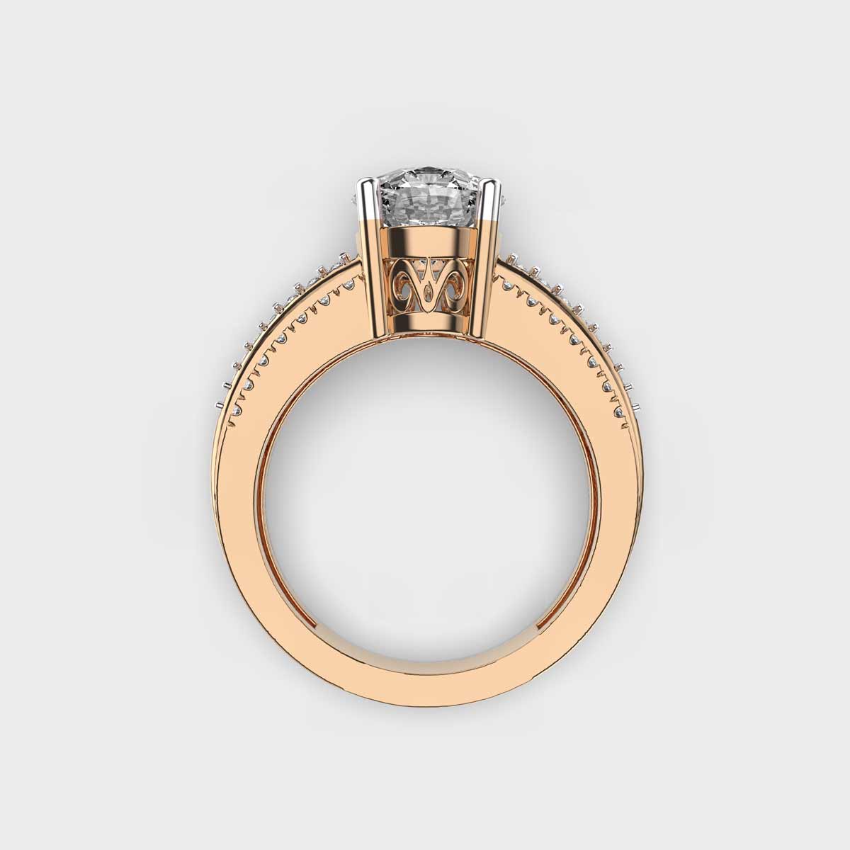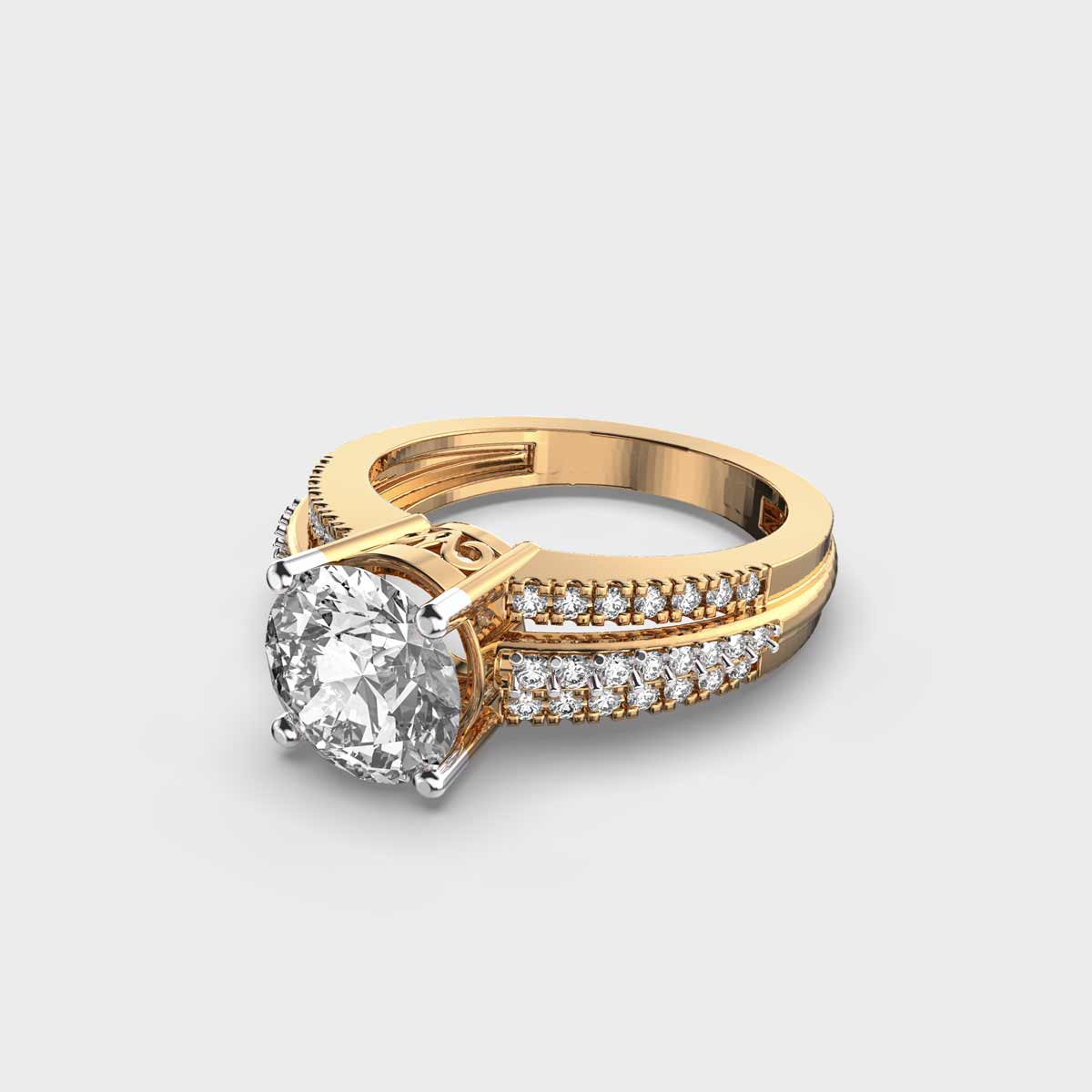 Inspired by celestial harmony, the Triluna Diamond Solitaire with Embellished Band captures the glow of moonlit nights in a timeless design. A brilliant solitaire diamond takes center stage, radiating pure brilliance, while the delicately adorned band adds a touch of sparkle that enhances its charm. Symbolizing love that shines through every phase, this ring is perfect for marking life’s most meaningful moments with grace and brilliance.