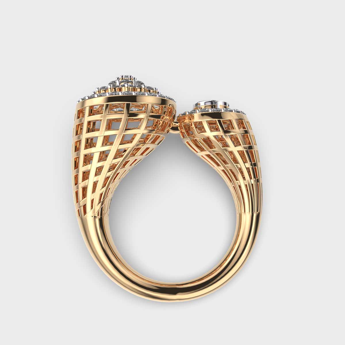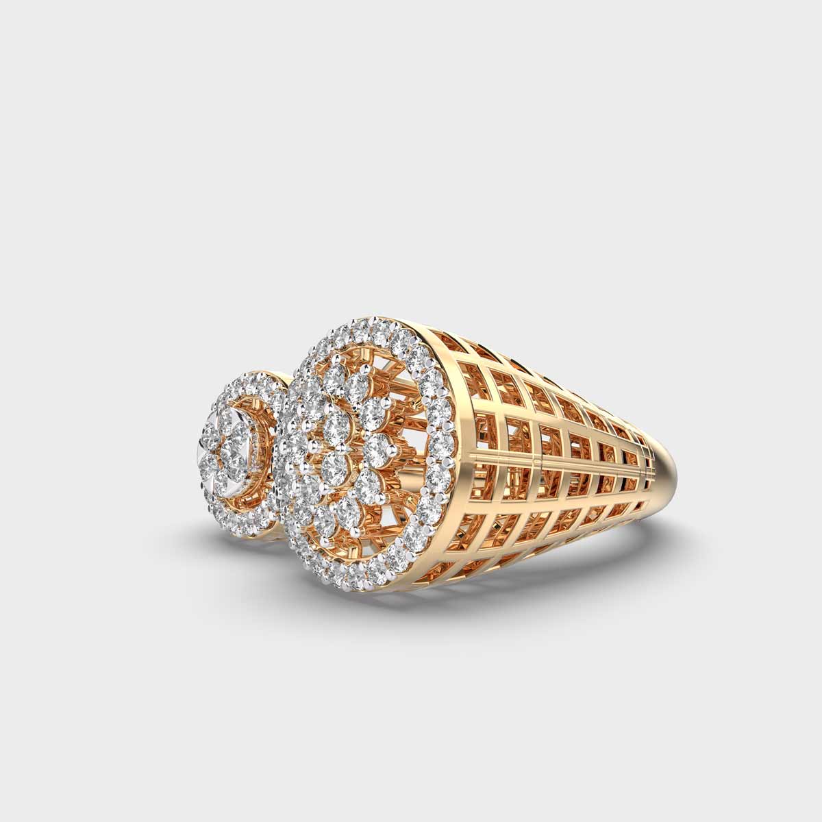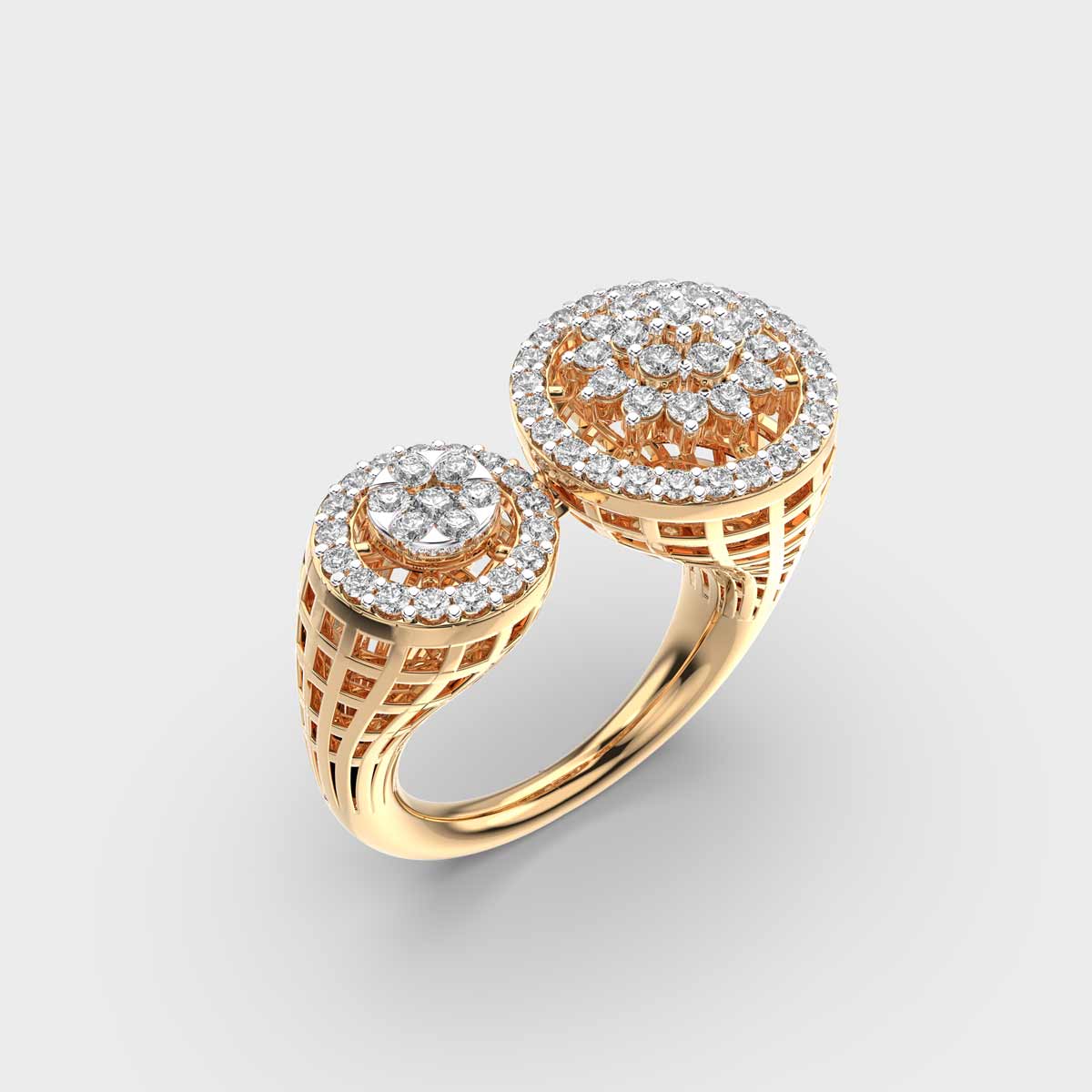 A striking symphony of balance and brilliance, the Twin Circle Cocktail Diamond Encrusted Ring is crafted to turn heads.
