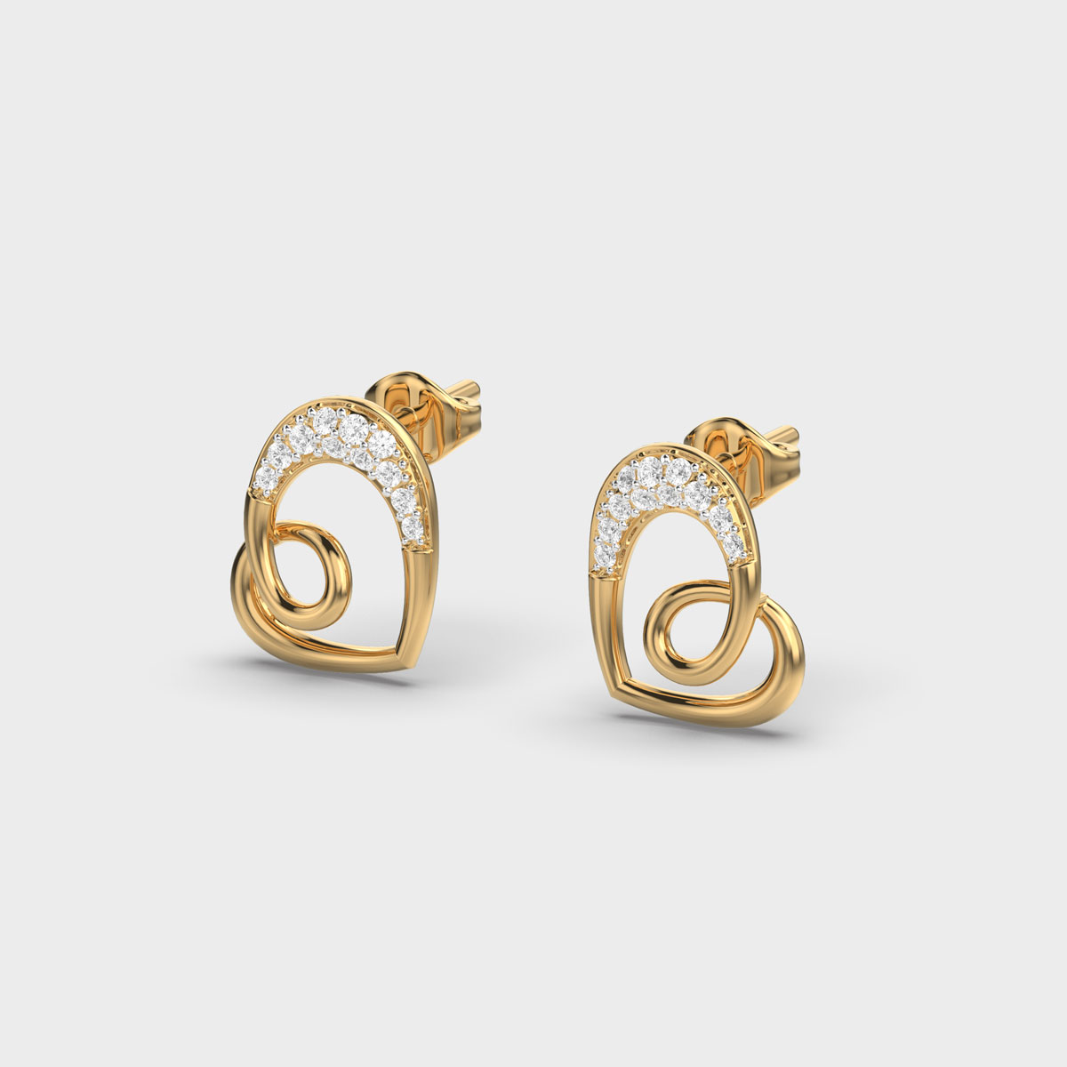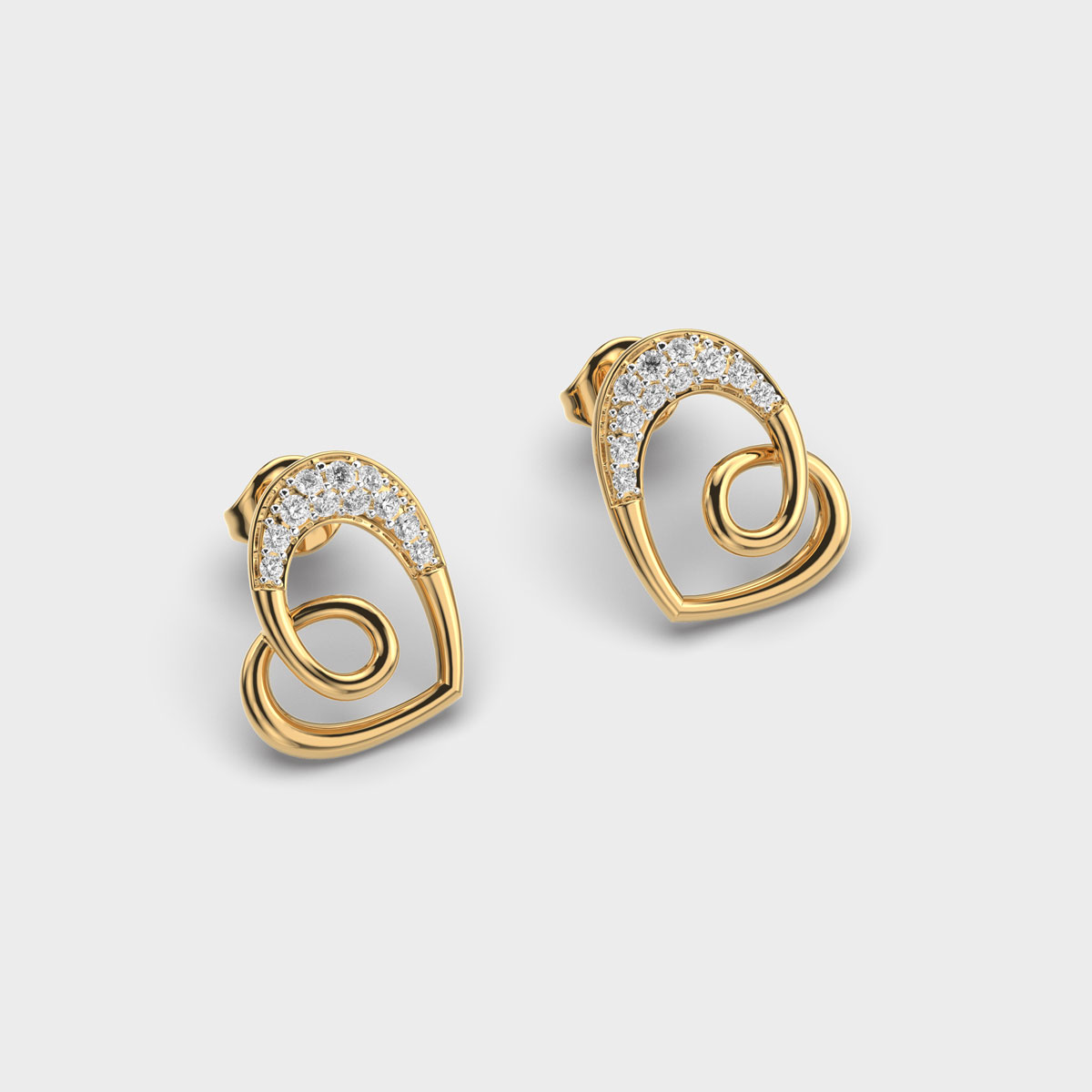Twisted Heart Diamond Stud Earrings