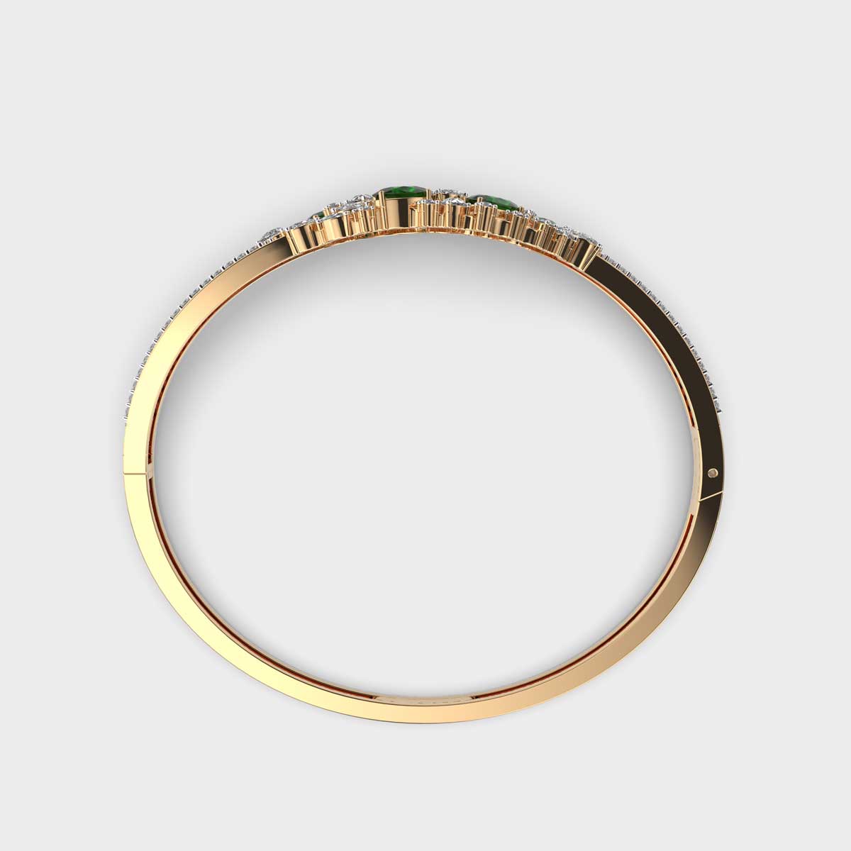 Bringing together vibrant color and timeless sparkle, Verdant Green Gem Diamond Encrusted Bracelet features lush green gemstones beautifully accented with encrusted diamonds. Its refined design adds a refreshing pop of brilliance, making it perfect for festive occasions or as a standout everyday accessory. A unique piece of diamond jewellery, it combines elegance with a touch of nature-inspired charm.